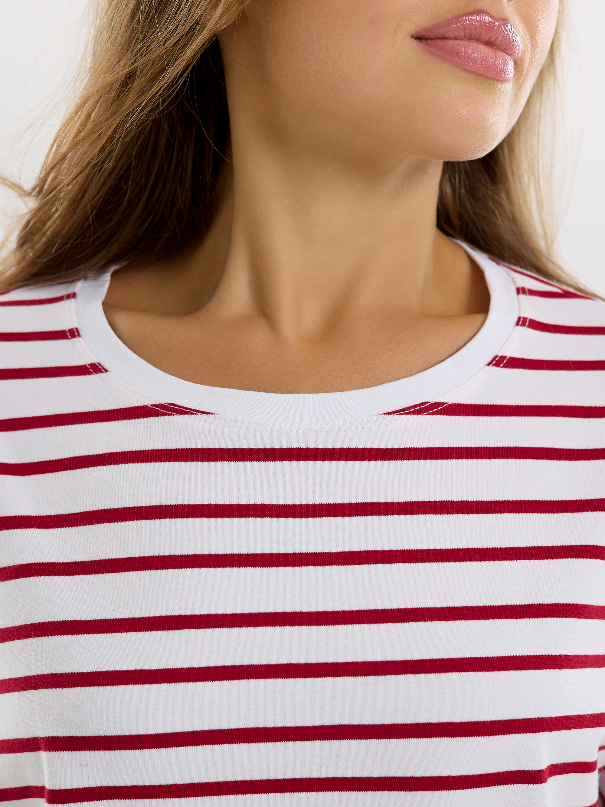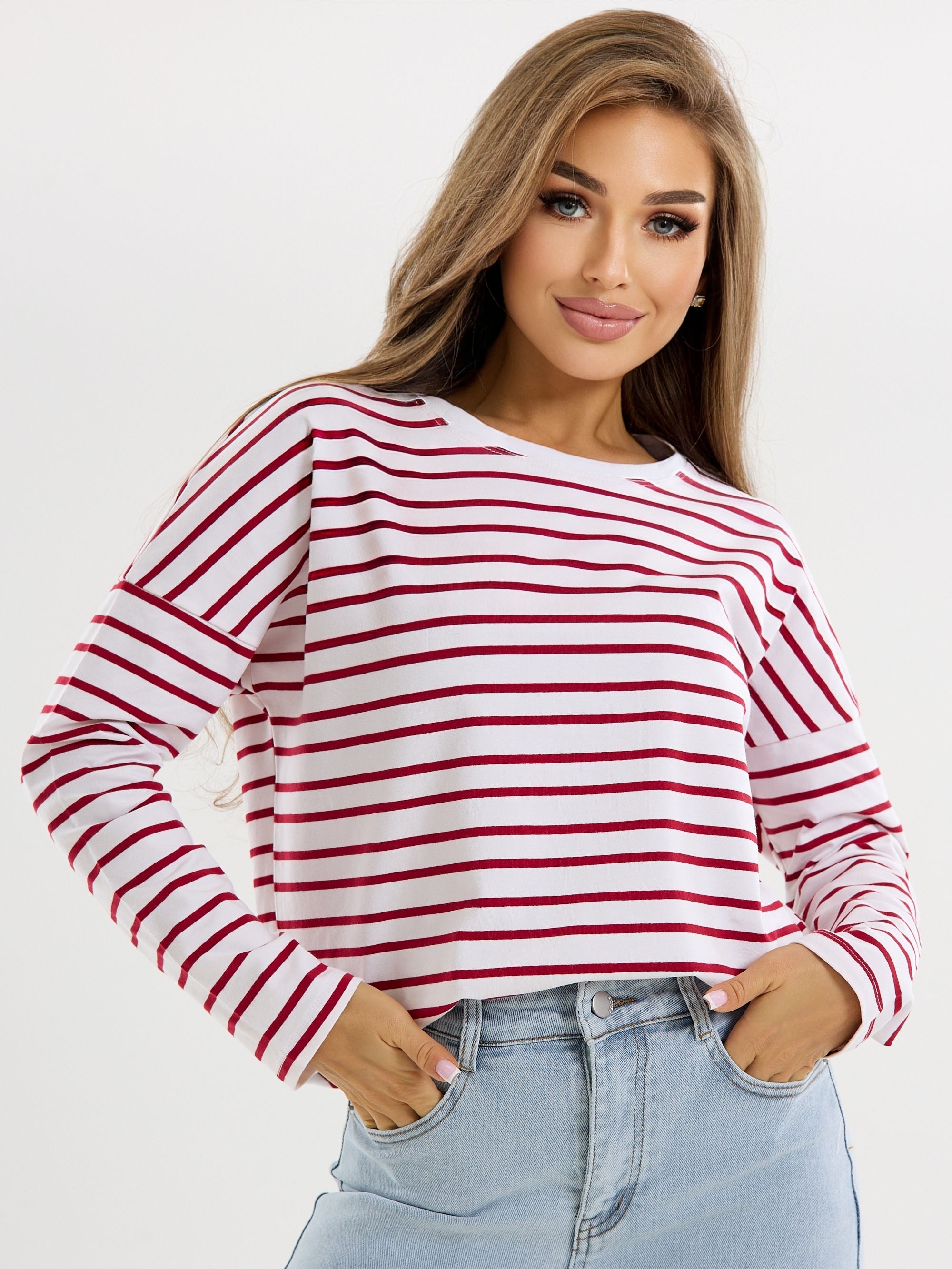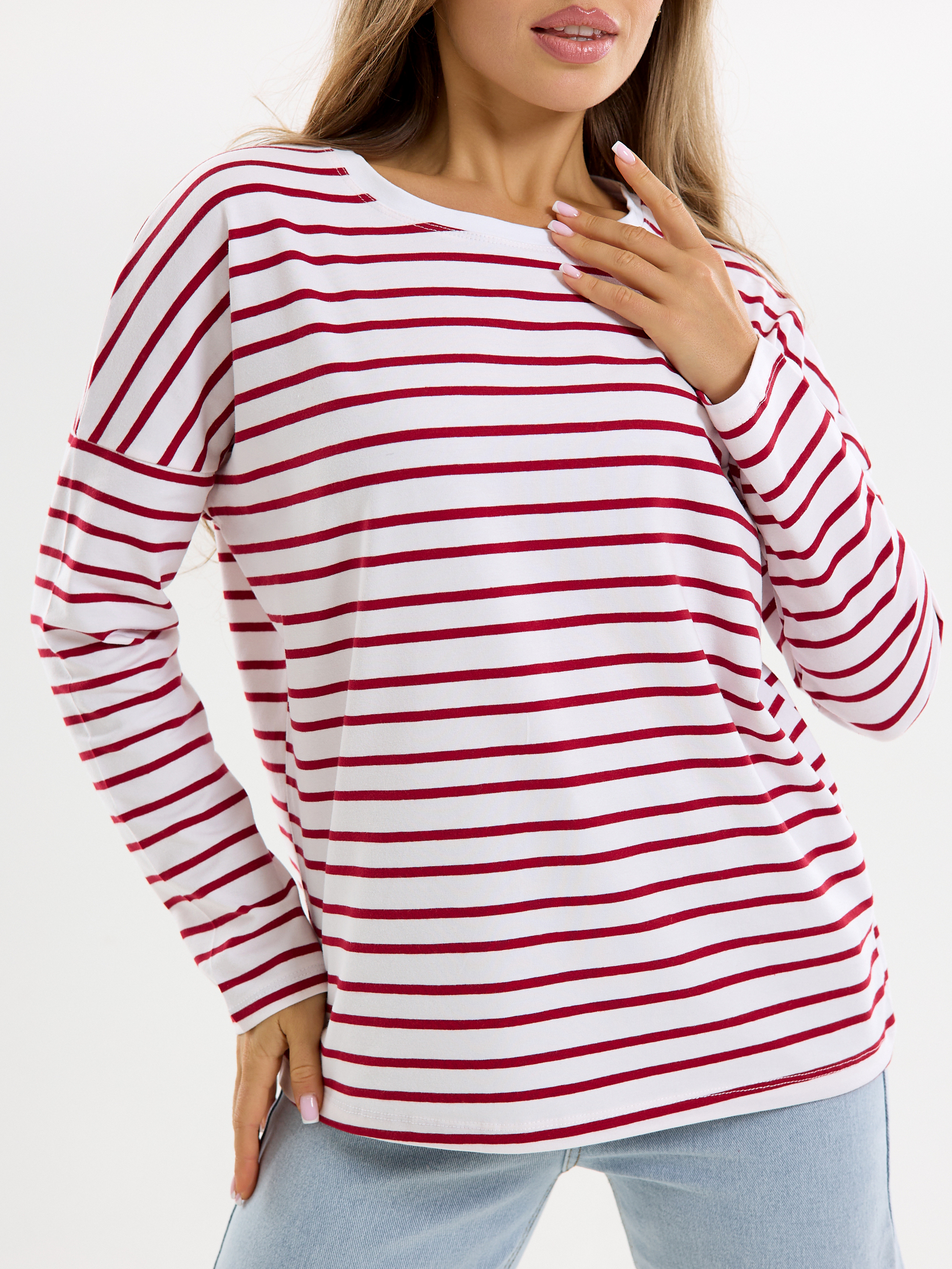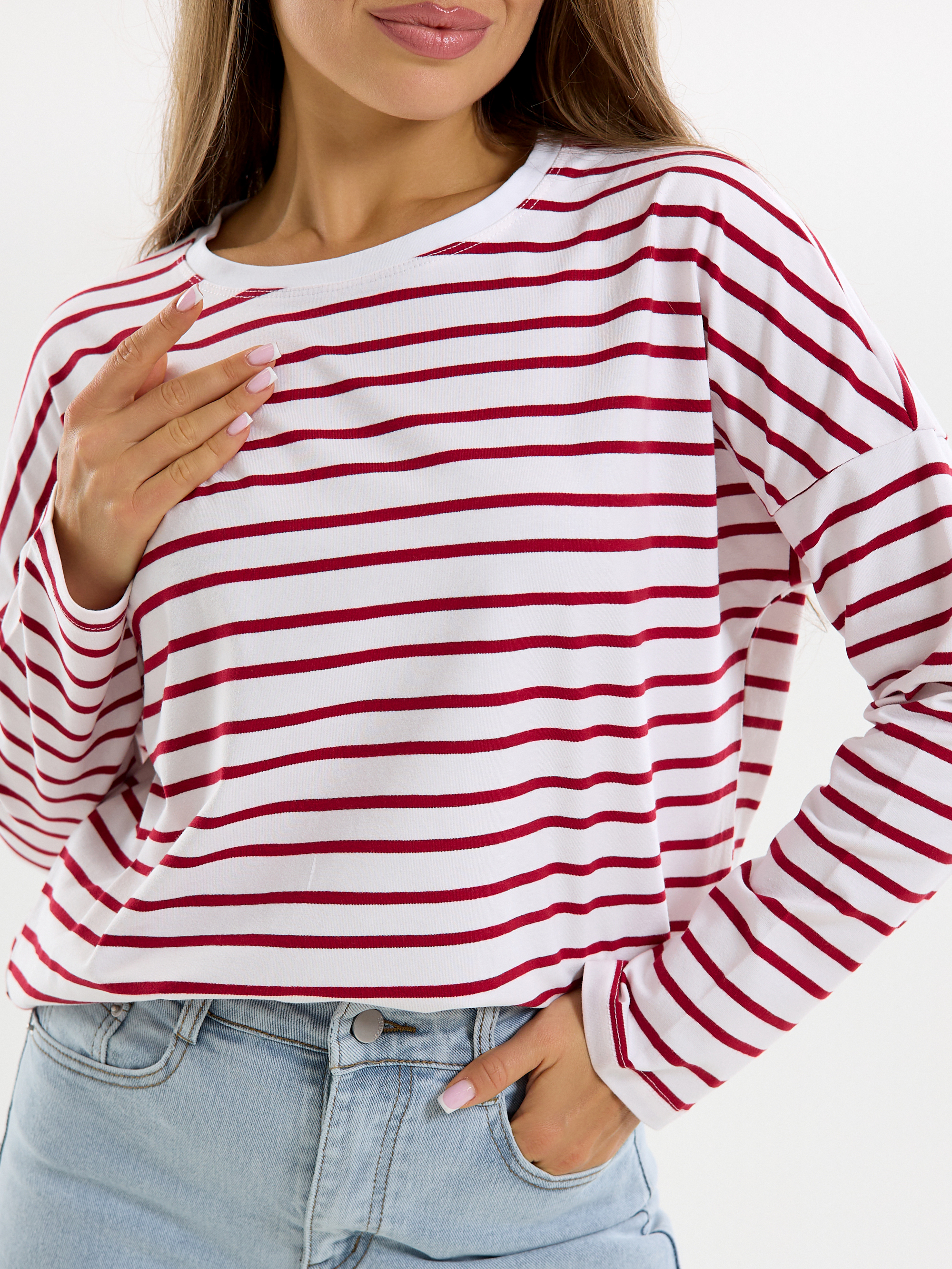Лонгслив "Полоска" (красн) спущенное плечо