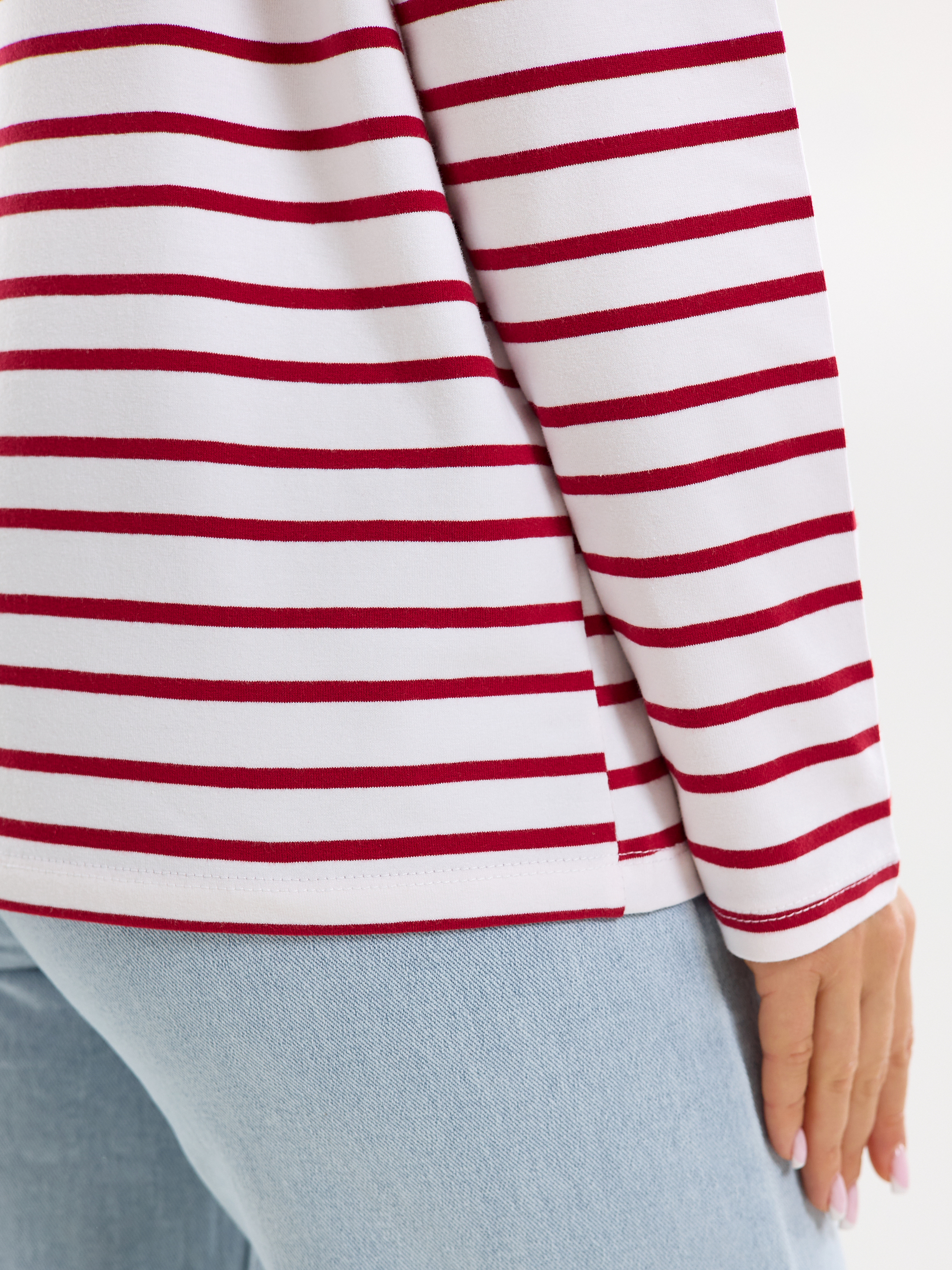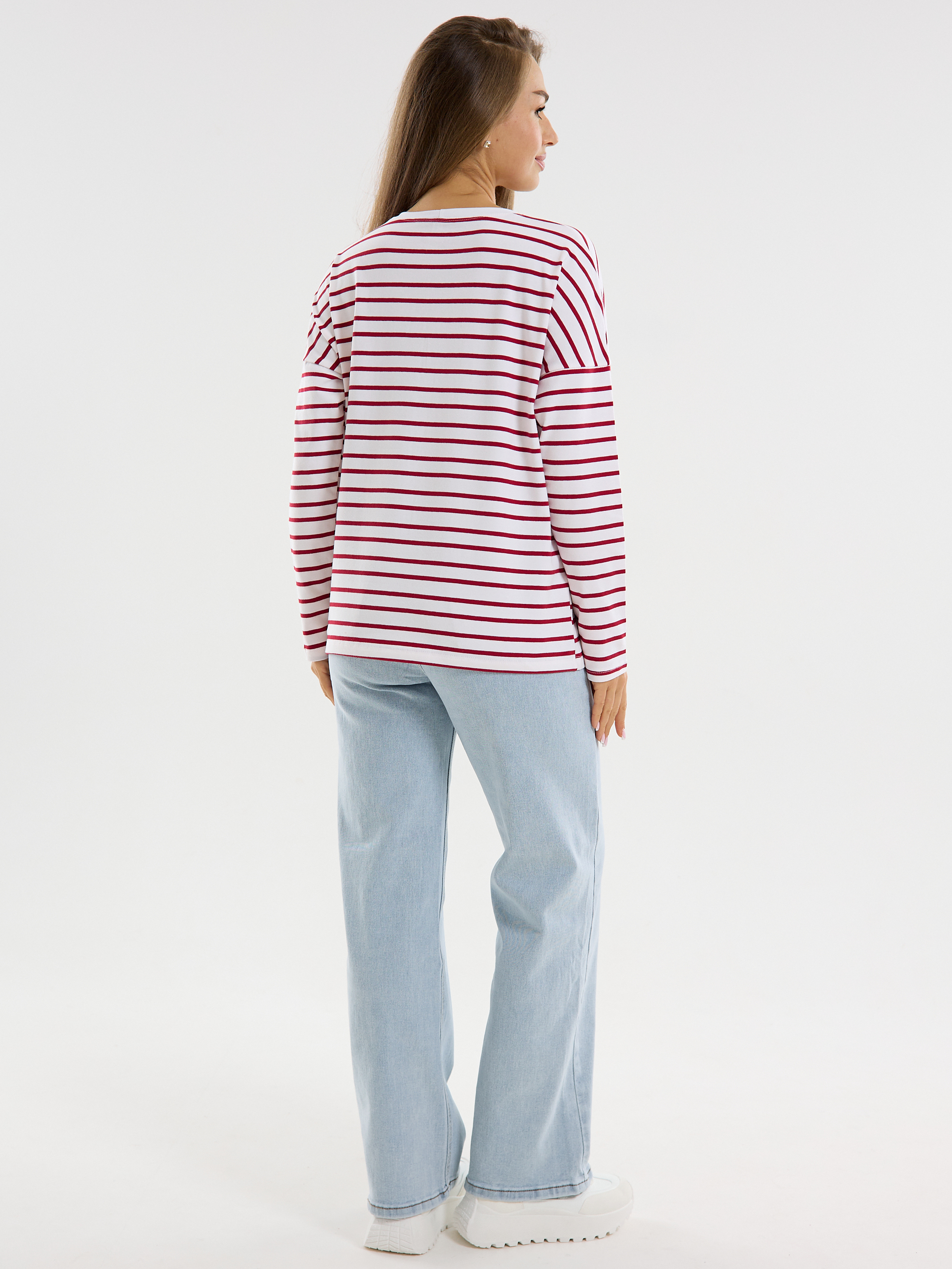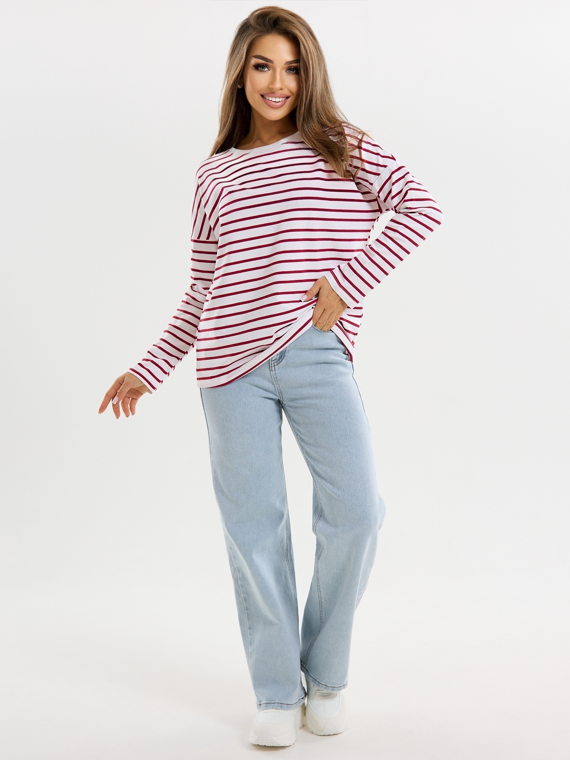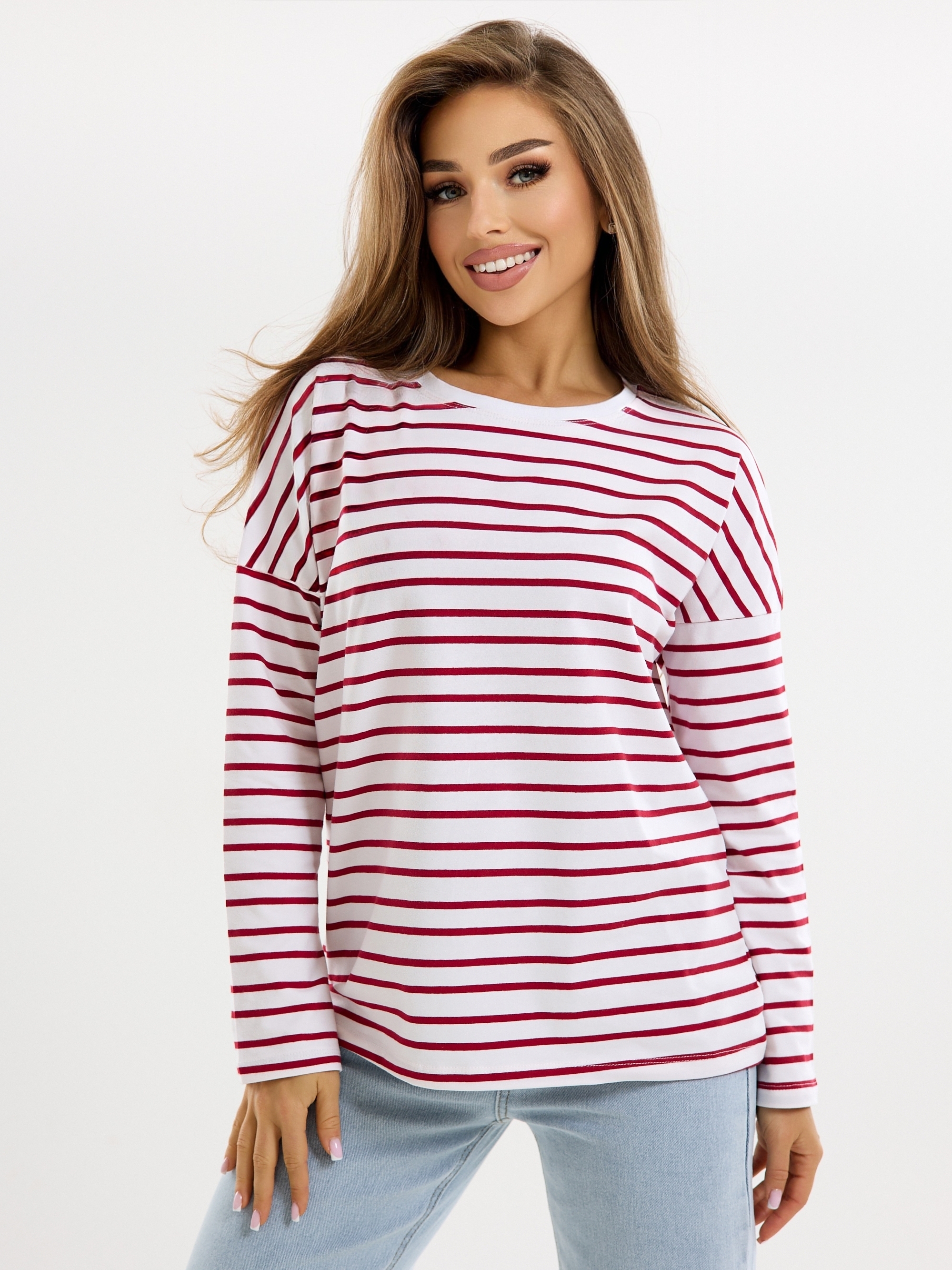 Лонгслив "Полоска" (красн) спущенное плечо